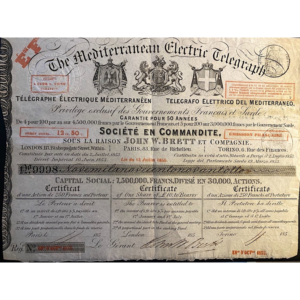 La connessione era un cavo a sei conduttori da Spezia a Corsica (75 miglia), linee di terra attraverso la Corsica (128 miglia), da lì alla Sardegna via cavo (10 miglia) e attraverso quell'isola (200 miglia). Ci doveva essere un cavo di acque profonde da 125 miglia dalla Sardegna a Secali in Africa. Un circuito sotterraneo doveva condurre ad ovest ad Algeri per il traffico francese e un'altra ad est ad Alessandria d'Egitto per i messaggi britannici in India. Intendeva imitare la compagnia sottomarina, l'unica altra concessione telegrafica straniera concessa dai francesi, ma non ripeté quel successo. Il cavo Africa della Société fallì per diversi tentativi e abbandonò i suoi diritti di sbarco al governo francese nel 1856.