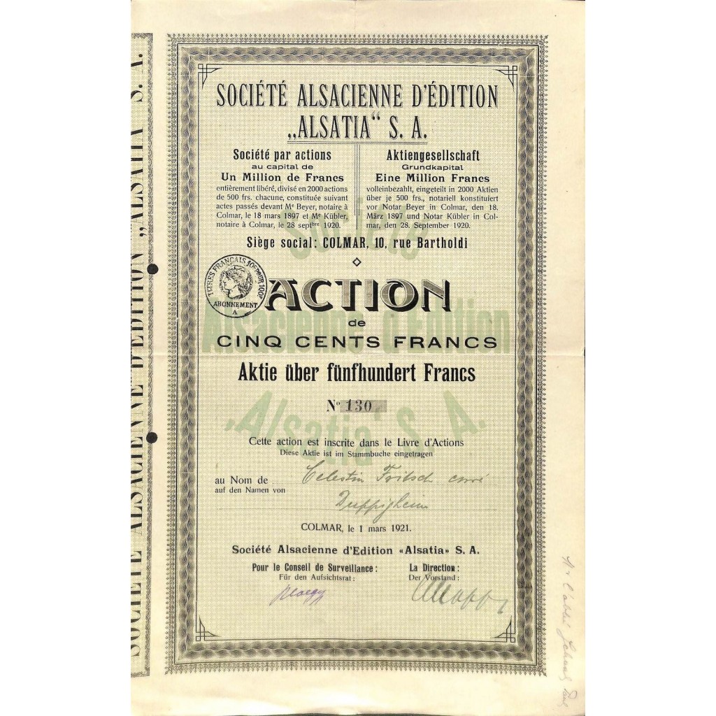 1921 - ALSATIA - SOC. ALSACIENNE D'EDITION