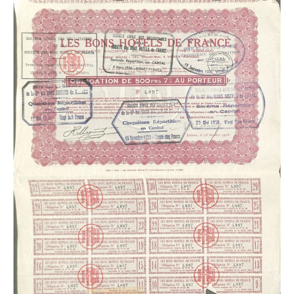 Titolo obbligazionario 7% al portatore del valore di 500 Franchi.